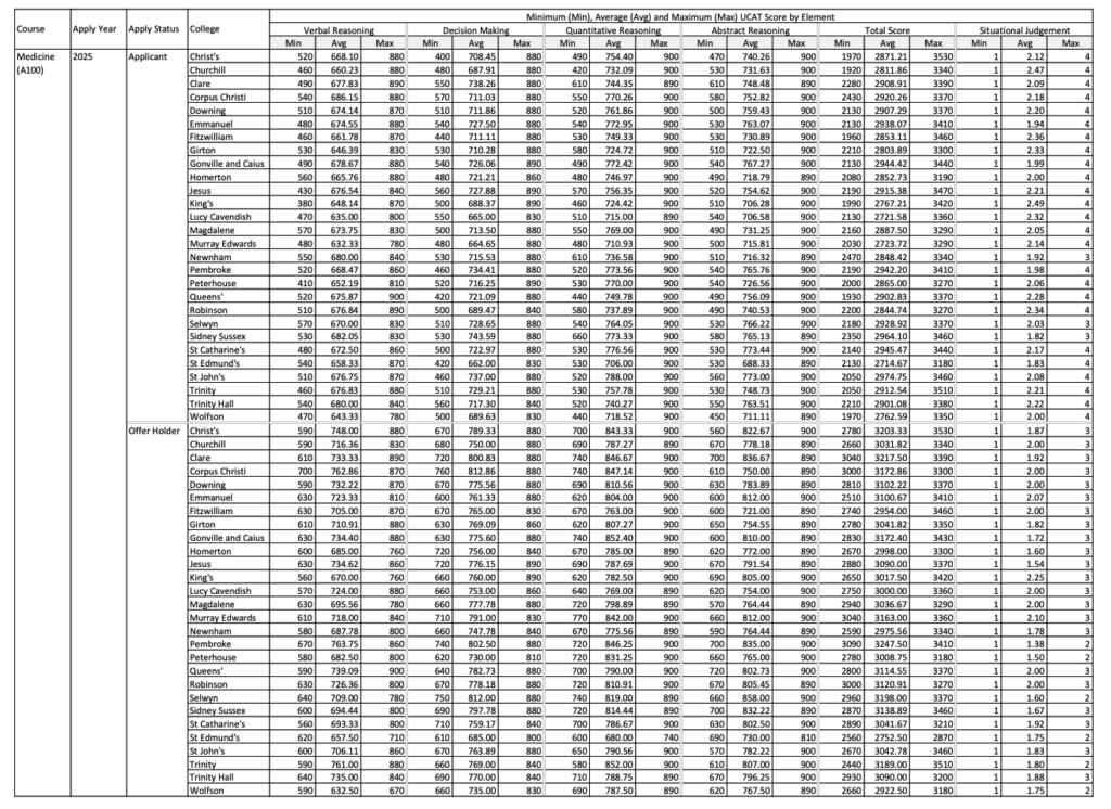 Below are the average UCAT scores of applicants and offer holders within the 2025 entry cycle: